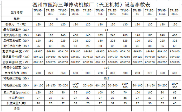 您當前的位置:首頁 / 產品中心 / 三模三沖冷鐓機 / └ TW19B(M12)多工位冷鐓機 / TW19B三模三沖多工位冷鐓機