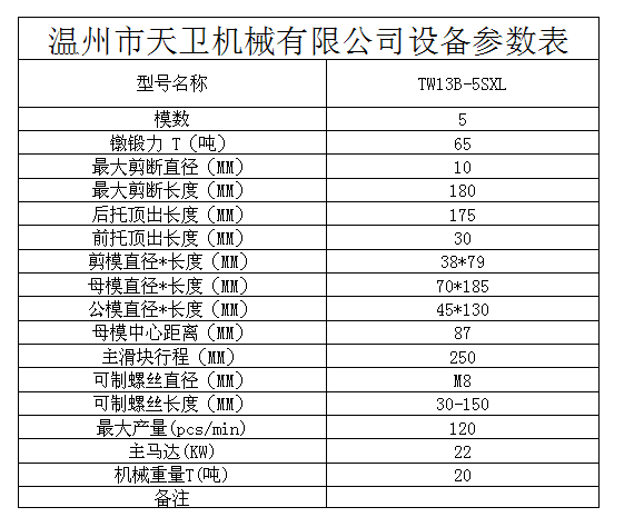 您當前的位置:首頁 / 產品中心 / 五模五沖多工位冷鐓機 / └ TW13B(M8)多工位冷鐓機 / TW13B-5SXL全自動多工位冷鐓機